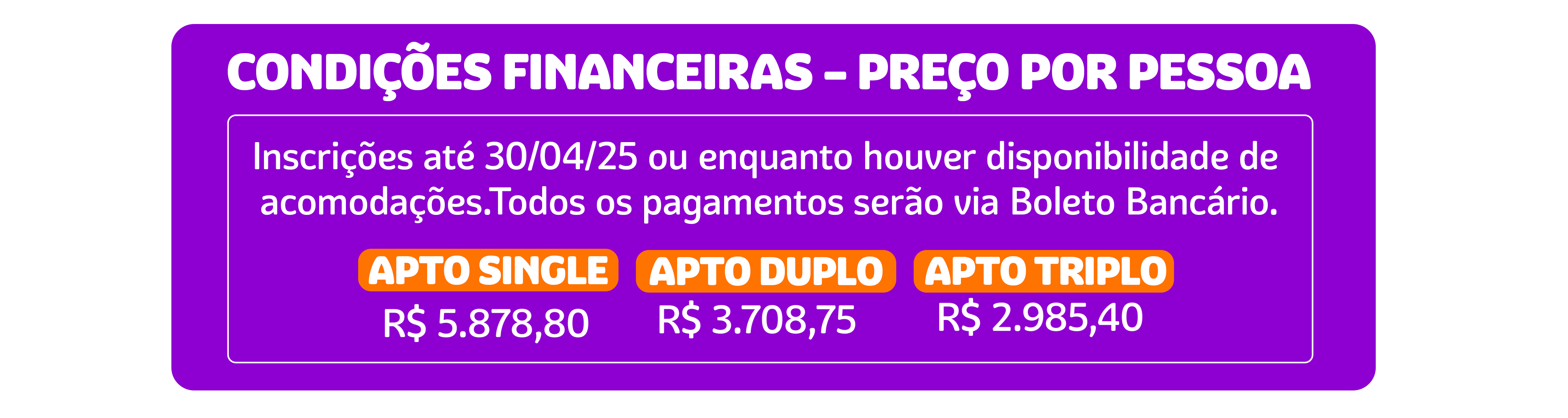 Envie um e-mail com o assunto “INSCRIÇÃO CONVENÇÃO DE FRANQUEADOS” para verificar a disponibilidade de acomodação e valores com a nossa produtora e aguarde um breve retorno.